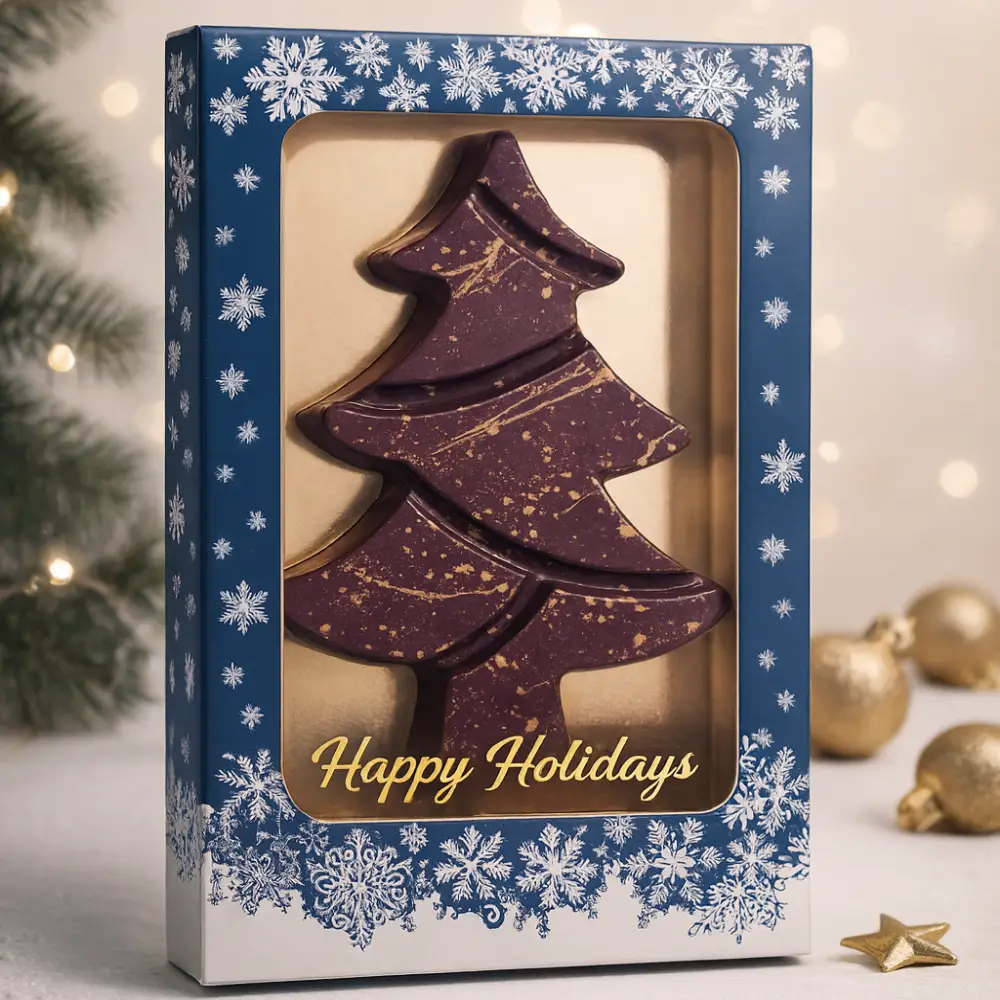 Perfect for corporate gifting, premium hampers, festive add-ons, stocking fillers, and refined Christmas celebrations, this Red Christmas Tree chocolate bar delivers visual impact, indulgent taste, and a memorable festive experience.