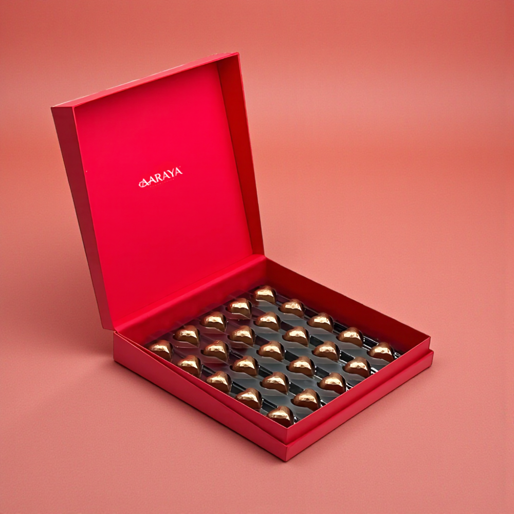 Each chocolate is crafted using the finest ingredients, delivering a smooth, velvety texture and timeless flavour. The elegant heart shape symbolises affection, while the golden finish elevates the gifting experience.